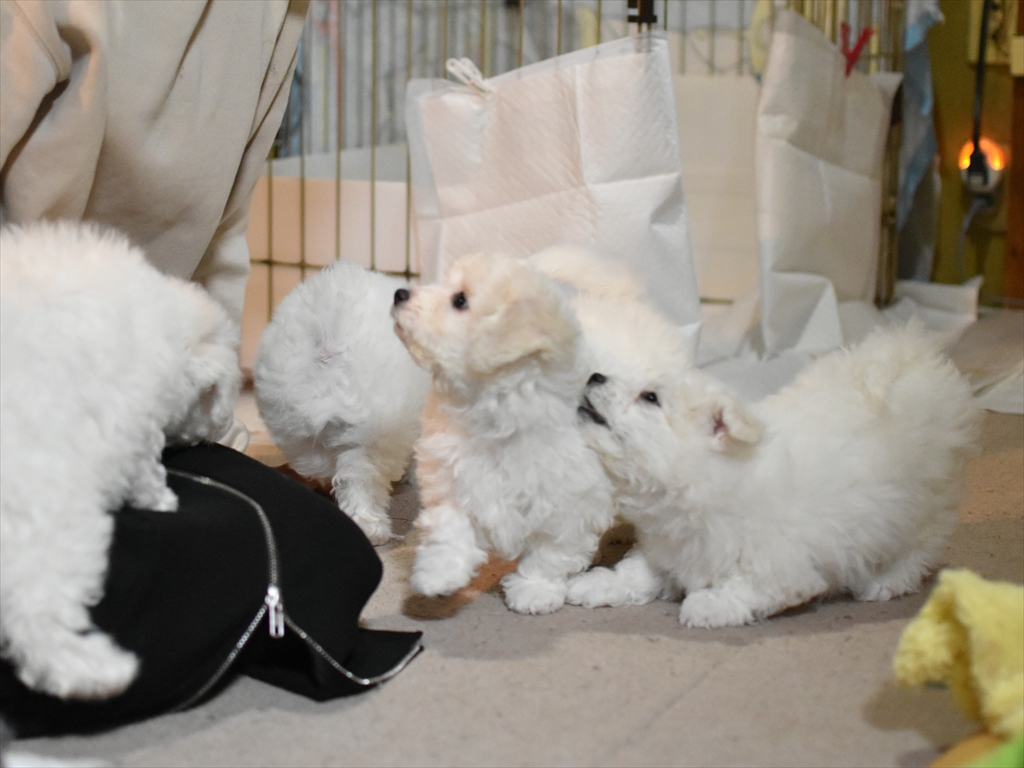 愛知県名古屋市にある、子犬販売ドッグサーチ店(SUGASHO犬舎)のビションフリーゼ子犬たちを紹介しています。