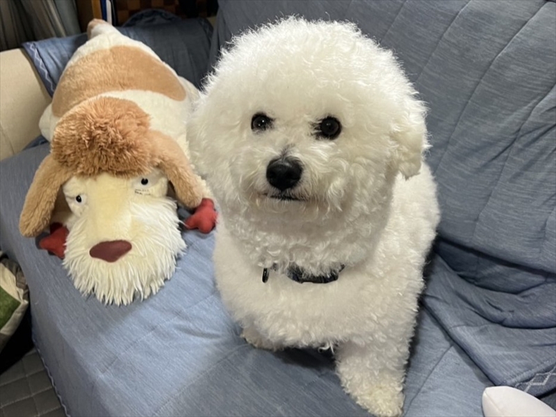 小さい頃はトイプードルやマルチーズによく似ていますが、毛量が多く伸びてくるとそこはやっぱり【ビションフリーゼ】。