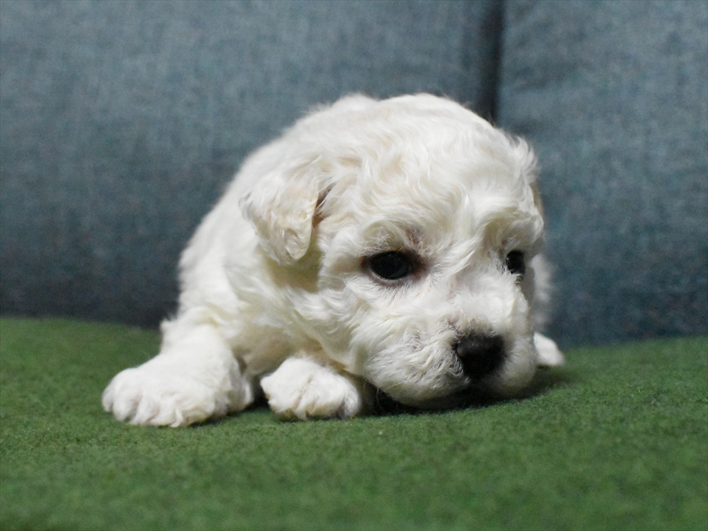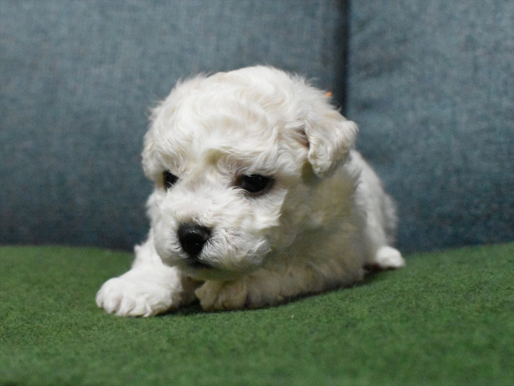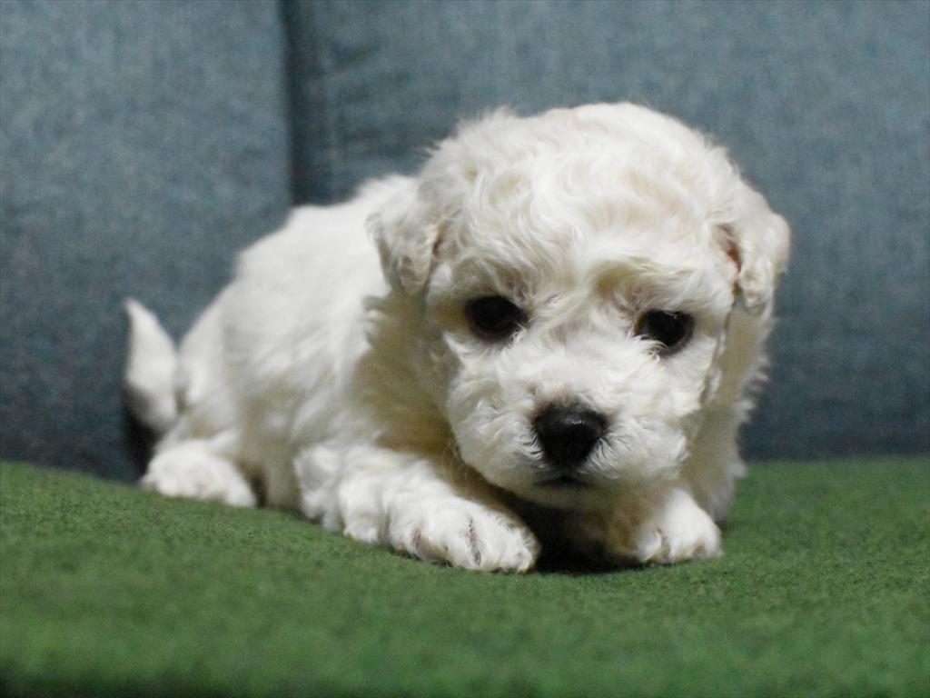 マズルも短めで、体つきもしっかりしていますので、将来フワフワアフロのビションヘアーが良く似合う子になると思います。