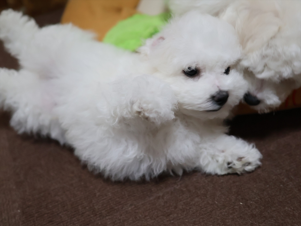 当犬舎で生まれる子犬は男の子の場合は5~6㎏前後の、標準サイズのビションフリーゼです。