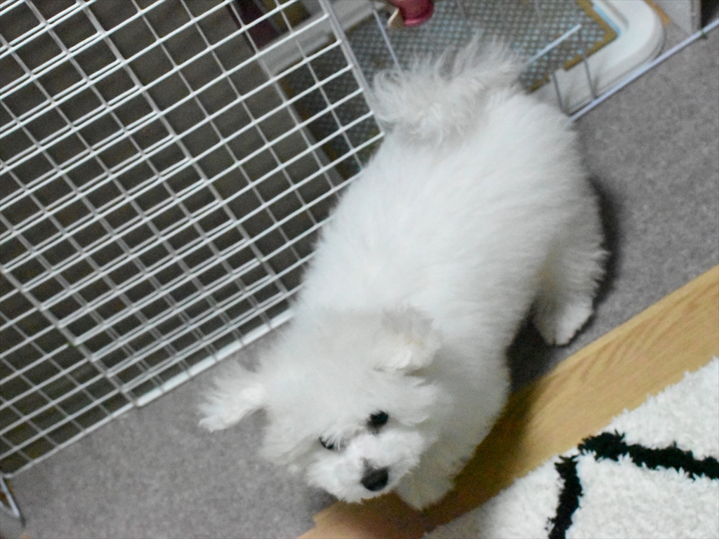 他のブリーダーさんやペットショップはわかりませんが、我が家ではただご飯を与えて過ごしているわけではなく、パピートレーニングも行っています。今は「マテ」の練習中です!